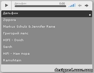 Аудиоплеер имеет размеры 305Х235 и оснащён плейлистом который может содержать любое количество музыкальных композиций или радиопотоков. Воспроизведение музыки автоматически не переключается на следующую, каждую мелодию нужно включать индивидуально. Для установки понадобится скопировать весь код из примера, создать текстовый документ для плейлиста или скачать готовый и составить список воспроизводимых композиций.